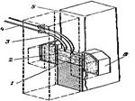 В перегретом шлаке 2 (рис. 9 ) расплавляется электродная проволока 4 и оплавляютсясвариваемые кромки 5 заготовки, металл сливается в общей сварочной ванне / и по затвердевании образует сварной шов. Медные ползуны 6, охлаждаемые водой, по мере наплавления шва автоматически перемещаются вверх и обеспечивают формирование шва. На рис. 9 показано вертикальное сечение шва и видна лишь одна свариваемая часть заготовки (вторая очерчена штрихами). Зазор устанавливается в пределах 20 - 25 мм для свободного прохода направляющих 3 с электродной проволокой. Сварку ведут одним электродом (проволокой) или несколькими в зависимости от толщины заготовки на стыке.