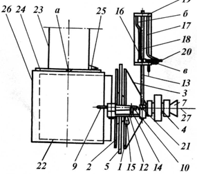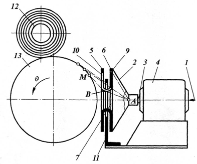 Постановка такой задачи вызвана необходимостью оснащения современных машин для производства химических и минеральных нитей высокоскоростными, надежными и экономичными приемно-намоточными механизмами.