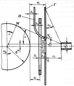 Существенным недостатком этой схемы является значительное отставание вращающегося баллона нити от глазка 1 нитеводителя из-за наличия сил трения между движущейся нитью и неподвижным кулачком раскладки. Это обстоятельство ведет к нарушению контакта нити с рабочим профилем кулачка на участках реверса и искажению заданной формы и структуры формируемой паковки. Кроме того, изогнутая нитеводительная трубка статически и динамически не сбалансирована.