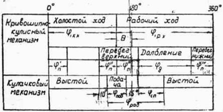 Рис.3. Циклограмма работы механизмов ' долбежного станка.