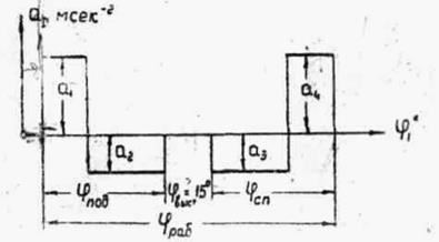 Рис.4. Закон изменения ускорения толкателя кулачкового механизма.