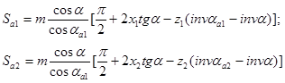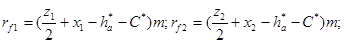 (расстояние между делительной окружностью одного колеса и основной окружностью другого колеса);