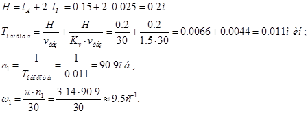 Число двойных ходов ползуна в минуту, равное числу оборотов кривошипа n1, определяют по заданной скорости резания vрез с учетом коэффициента Kv изменения средней скорости.