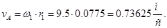 Из точки А проводим произвольный отрезок параллельно оси линейных скоростей. Конец отрезка отмечаем точкой