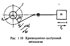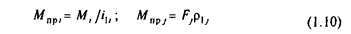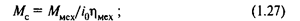 При вычислении приведенного статического момента Мс формулы (1.13) и (1.14) удобны для использования в тех случаях, когда все действующие в механизме силы и моменты определены. Обычно потери на трение в механизме неизвестны, и для их учета используется КПД механизма