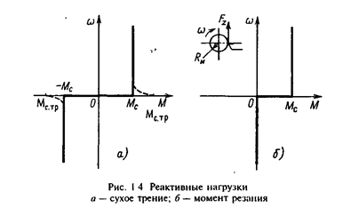 Реактивными силами и моментами называются силы и моменты сопротивления движению, возникающие как реакция на активный движущий момент, развиваемый двигателем, либо любой другой активный движущий момент, например обусловленный силой тяжести или силой инерции. Эти нагрузки всегда действуют в направлении, противоположном движению электропривода, и изменяют свое направление при изменении знака скорости.