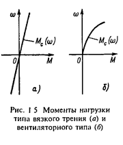 Таким образом, все реактивные силы и моменты зависят от скорости. По характеру этой зависимости различают нагрузки типа сухого трения, типа вязкого трения и вентиляторного типа.