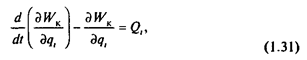 Механическая часть электропривода представляет собой систему твердых тел, на движение которых наложены ограничения, определяемые механическими связями Уравнения механических связей устанавливают соотношения между перемещениями в системе, а в тех случаях, когда задаются соотношения между скоростями ее элементов, соответствующие уравнения связей обычно интегрируются В механике такие связи называются голономными В системах с голономными связями число независимых переменных - обобщенных координат, определяющих положение системы, - равно числу степеней свободы системы Известно, что наиболее общей формой записи дифференциальных уравнений движения таких систем являются уравнения движения в обобщенных координатах (уравнения Лагранжа)