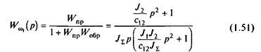 В соответствии с (1.55) и рис.1.13,б колебательность второй массы выше, чем первой. В низкочастотной области асимптоты ЛАЧХ Lw1 и Lw2 совпадают, так как в среднем движение второй массы также определяется интегрирующим звеном Wи =JS /p. Однако при W>W2 наклон высокочастотной асимптоты Lw 2 составляет -60 дБ/дек, и нет факторов, которые ослабляли бы развитие резонансных колебаний при любых g.