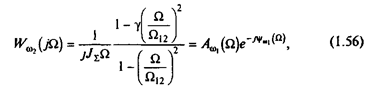 скачком меняет знак числитель (1.56), что соответствует уменьшению фазового сдвига на 180°. Затем на частоте W=W12