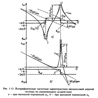 аналогично изменяется знак знаменателя, и фазовый сдвиг вновь принимает значение -90° в соответствии с высокочастотной асимптотой ЛАЧХ На рис.1.13,б представлены логарифмические частотные характеристики механической части электропривода по управлению при выходной переменной w2