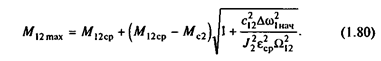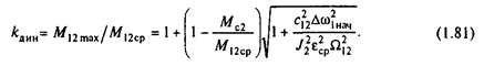 Анализируя (1.80), можно установить, что динамические нагрузки, обусловленные упругими колебаниями, существенно увеличивают нагрузки передач. При отсутствии колебательной составляющей в (1.79) момент нагрузки передач в процессе пуска равен М12ср =J2 eср +Мс2 . За счет упругих колебаний в соответствии с (1.8(5) нагрузка возрастает, и ее превышение над средней нагрузкой называется динамическим коэффициентом:
