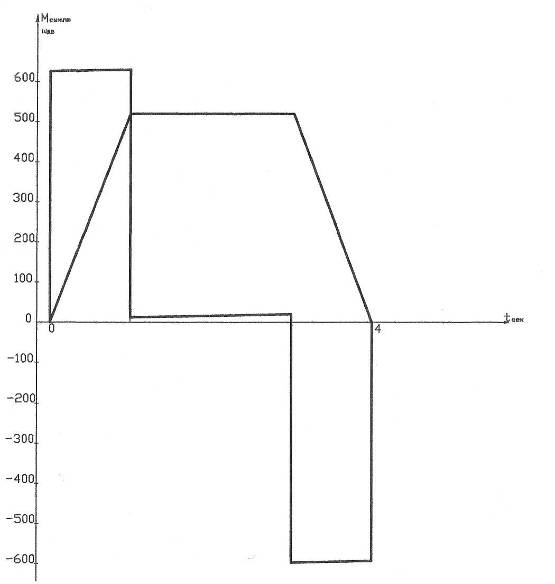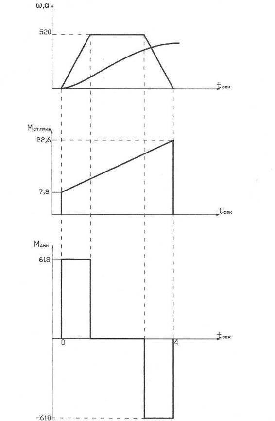 РРисунок 4 – Диаграмма зависимостей ωдв (t), Мс.пр (t), Mдин.пр. (t), ά(t).