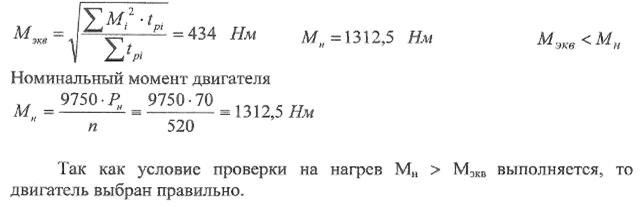 Считая, что двигатель, рассчитанный на ПВ=40%, работает именно в таком режиме, проверим двигатель на нагрев: