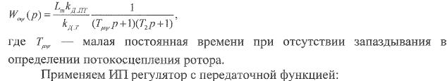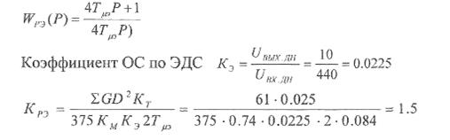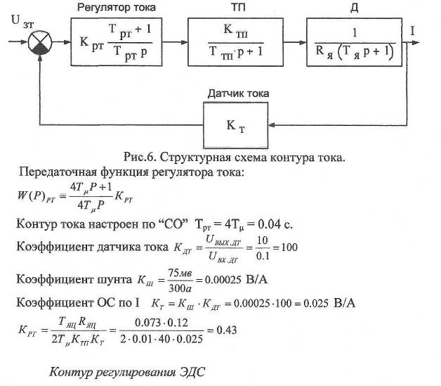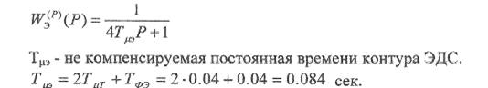 Контур включает в себя регулятор ЭДС, датчик ЭДС ДЭ, замкнутый контур регулирования тока. Регулятор ЭДС является ПИ - регулятором. Передаточная функция разомкнутого контура ЭДС, настроенного но "симметричному оптимуму", имеет вид: