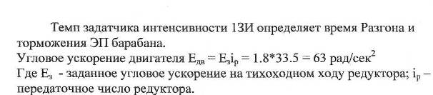 При команде на запуск барабана включается реле КЗ (ЯР1) и подает напряжение на вход 13И, Появляется ток в цепи якоря двигателя который через датчик тока сравнивается с изменяющимся выходом регулятора ЭДС и обеспечивает разгон привода. Разгон продолжается до установившейся скорости, пока сигнал обратной связи по ЭДС на входе РЭ не станет равным сигналу с 13И. Выход РЭ