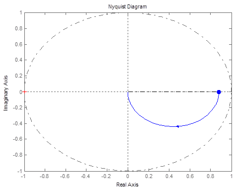 По критерию Найквиста замкнутая система является устойчивой, так как ее амплитудно-фазная частотная характеристика не охватывает точку с координатами [-1;j0], и обладает бесконечными запасами устойчивости по амплитуде и по фазе.