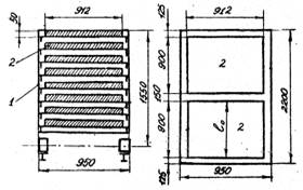 Об’єкт сушіння перебуває в піддонах з розмірами апід × впід × спід = =900×912×50 мм. Піддони встановлені на вагонетках, розміри яких ав × вв × × св =2200×950×1500 мм. Кількість піддонів на вагонетці nпід =30шт. Маса піддона mпід =1 кг; маса вагонетки mв =100 кг. Піддони розташовані на вагонетці як це зображено на рисунку 1.