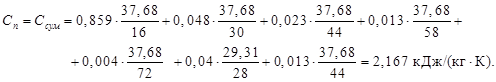 Паливо – природний газ – має нижчу теплоту згоряння палива на суху масу за нормальних умов Qн с =36491 кДж/м3 н і склад у процентах за об’ємом: