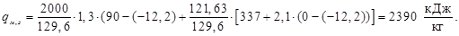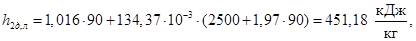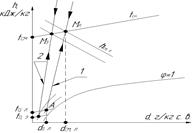 Температура палива tП дорівнює температурі зовнішнього повітря відповідно у січні і липні. ККД топки hТ =0,95. Продуктивність установки за готовим продуктом G2 =2000 кг/год. Початковий вологовміст об’єкта сушіння uo =0,075 кг/кг, кінцева вологість готового продукту wк =1,0%. Питома масова теплоємність висушеного матеріалу См =1,35 кДж/(кг∙К). Рівноважна вологість готового продукту, яка відповідає параметрам сушильного агента на виході з тунелю wр =0,8%. Питома площа поверхні об’єкта сушіння Fпит =0,08 м2 /кг. Матеріал надходить на сушку з температурою q1 , що дорівнює відповідно температурі за мокрим термометром, яка відповідає параметрам зовнішнього повітря, влітку і температурі зовнішнього повітря взимку. Температура висушеного матеріалу на виході із сушильного тунелю q2 =t2 –Dt=90–10=80 o C, де t2 =90o C – температура сушильного агента на виході із тунелю; Dt=10 o C.