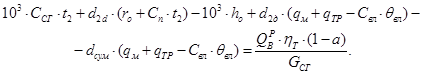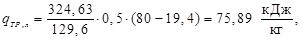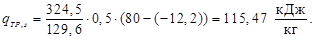 Матеріал переміщується в сушильному тунелі транспортними пристроями – на вагонетках з піддонами – в одному напрямку із сушильним агентом. Питома масова теплоємність транспортних пристроїв Стр =0,5 кДж/(кг∙К). Температура транспортних пристроїв на вході в сушильний тунель t'ТР дорівнює температурі зовнішнього повітря відповідно влітку і взимку, а на виході із тунелю – температурі висушеного матеріалу, тобто t''ТР =q2 .