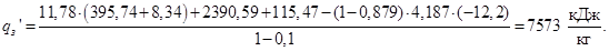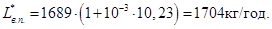 е) Розрахункова витрата повітря Qp *, кг/с, з врахуванням поправки на можливість підсосу повітря або втрат сушильного агента в повітропроводах, газоходах и других елементах сушильної установки: