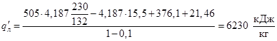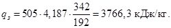 Питомі витрати теплоти сушильною установкою в навколишнє середовище q5 становлять а=10% від сумарної питомої витрати теплоти на сушіння q.