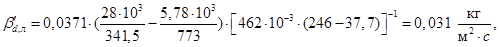 Насипна густина готового продукту r2,м =650 кг/м3 . Характерна довжина матеріалу (визначальний розмір) у напрямку обтікання його сушильним агентом lo =1,4м. Швидкість руху сушильного агента в тунелі на ділянці, яка відповідає першому періоду сушки wo =1,4 м/с.