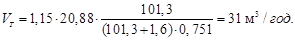 г) Об’ємна витрата сушильного агента Qц *, м3 /c,зведена до умов на виході з циклона: