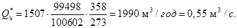 а) Об’ємна витрата сушильного агента Qц,о *, м3 /c, на виході з циклона при нормальних умовах: