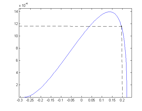 Выберем точку правее максимума:
