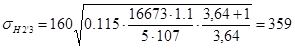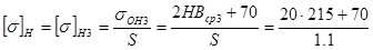 Определяем допускаемые контактные напряжения по средней твердости зубьев НВср более мягкого колеса при коэффициенте запаса S, равным 1.1 (ГОСТ 21354-87). Для быстроходной ступени
