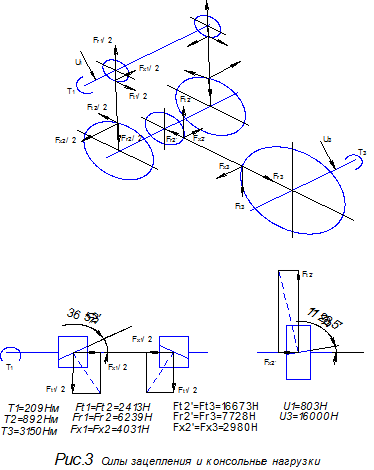 Консольная нагрузка тихоходного вала U3 =16000 Н.