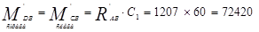 Наибольшие суммарные опорные реакции и изгибающие моменты: