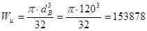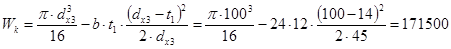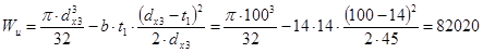 Сечение Х имеет, с учетом шпоночного паза, моменты сопротивления изгибу и кручению: