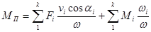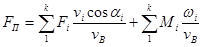 где FП - величина приведенной к точке В звена приведения сила, vB - скорость точки В приведения, МП - приведенный момент пары сил. Величины приведенной силы и приведенного момента можно представить в следующем виде: