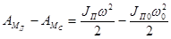АFД - работа приведенной к звену приведения движущей силы на рассматриваемом перемещении, АFС - работа приведенной силы сопротивления на том же перемещении, mП и mП0 - приведенные массы, соответствующие конечному и начальному положениям рассматриваемого перемещения, и v и v0 - скорости точки приведения, соответствующие конечному и начальному положениям рассматриваемого перемещения. Обычно удобнее в левую часть уравнения кинетической энергии вводить работу приведенных к звену приведения моментов сил АМД и АМС , а правую часть выражать через приведенные моменты инерции JП и JП0 звеньев. Тогда: