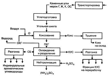 На рис.1.1 представлена общая схема коксохимического производства.