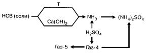 Если технологией не предусмотрено производство из ПКГ индивидуальных сульфида аммония, цианистого водорода и роданистых солей, то все соединения аммиака, содержащиеся в ПКГ, переводятся в стабильный, легко выделяемый сульфат аммония. Для этого нестойкие соли аммония, содержащиеся в НСВ, разлагают нагреванием острым паром, например:
