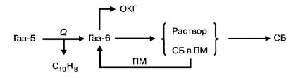 СБ, представляющий смесь ароматических углеводородов с температурой кипения до 180ºС, извлекается из ПКГ абсорбцией высококипящими растворителями с температурой кипения, более высокой, чем температура кипения СБ, с последующей отгонкой последнего. В качестве подобных сорбентов (ПМ) используется соляровое масло(tк = 300-350ºС) или фракция КУС (tк = 230-300°С). Предварительно из газа охлаждением выделяют остатки нафталина.