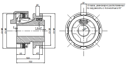 Так как в нашем случае муфта соединяет выходной вал редуктора с исполнительным органом, то по рекомендации (стр.472[1]) выбираем сцепную управляемую муфту. Выбор муфты обусловлен тем, что в процессе эксплуатации может понадобиться отключение исполнительного органа от редуктора без остановки электродвигателя. Кроме того, данная муфта предохраняет конструкцию в целом от перегрузок.
