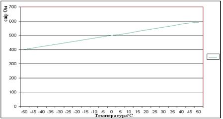 Як вимірювач температури в діапазоні - 50…50 ºC в розроблюваному приладі використовується термоперетворювач опору з аналоговим виходом і характеристиками: