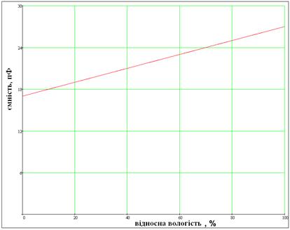 Як вимірювач воловті в розроблюваному приладі використовується ємнісний перетворювач вологості з аналоговим виходом і характеристиками: