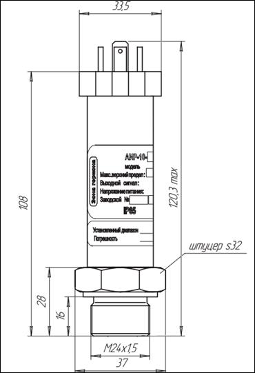 Як вимірювач тиску в діапазоні 0…10 МПа в розроблюваному приладі використовується перетворювач тиску АИР - 20 ДА з аналоговим виходом і характеристиками:
