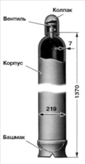 Балон складається з сталевого безшовного циліндричного корпусу зі сферичним днищем, на який напресований башмак.