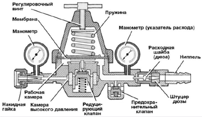 Редуктор призначений для пониження тиску газу, що надходить з балона.