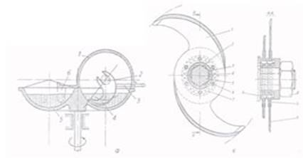 Конструкцию ножей и ножевой головки (рис.2,б) выбирают такой, чтобы обеспечить их лёгкую балансировку и поддерживать максимальный зазор между внутренней поверхностью чаши и режущей кромкой ножа.
