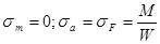 По этим зависимостям определяются постоянные составляющие циклов изменения напряжений σm и σm (средние напряжения цикла) и переменные составляющие σа и τа (амплитуды цикла) при симметричном цикле изменения напряжений изгиба и пульсирующем (отнулевом) цикле изменения напряжений кручения.