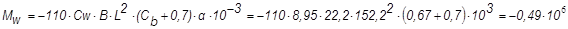 МW – хвильовий згинальний момент, що призводить до прогинання судна, кН м