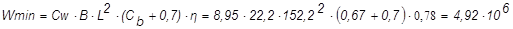 У всіх випадках момент опору поперечного перетину корпуса повинен бути не менш ніж: